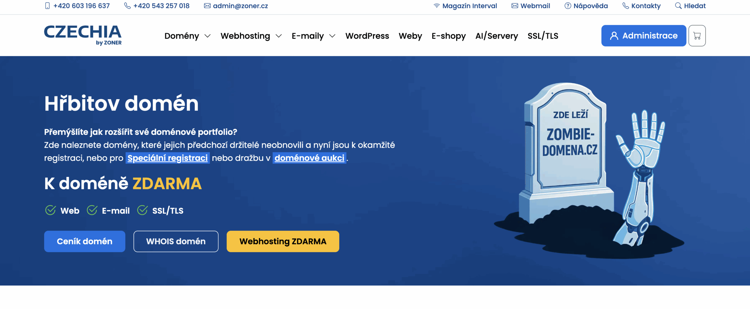 Chcete originální doménu, ale všechny dobré názvy už jsou pryč? Možná ne tak docela. Na webu CZECHIA.COM najdete nástroj, který vám otevře vstup na tzv. hřbitov domén – přehled jmen, jejichž původní majitelé neprodloužili registraci. A i když to zní poněkud morbidně, ve skutečnosti jde o užitečné místo, kde mohou „zemřelé domény“ znovu ožít pod vašimi projekty.