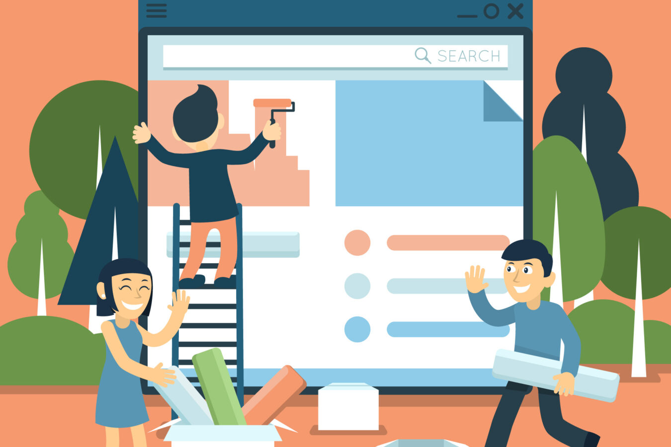 - Ilustracemi (flat, line-art, izometrie) – umožňují větší stylizaci a abstrahování složitých témat. Jsou vhodné pro technologické weby, SaaS služby nebo obsahové projekty. Klíčová je konzistentní tloušťka linek, barevnost a perspektiva.