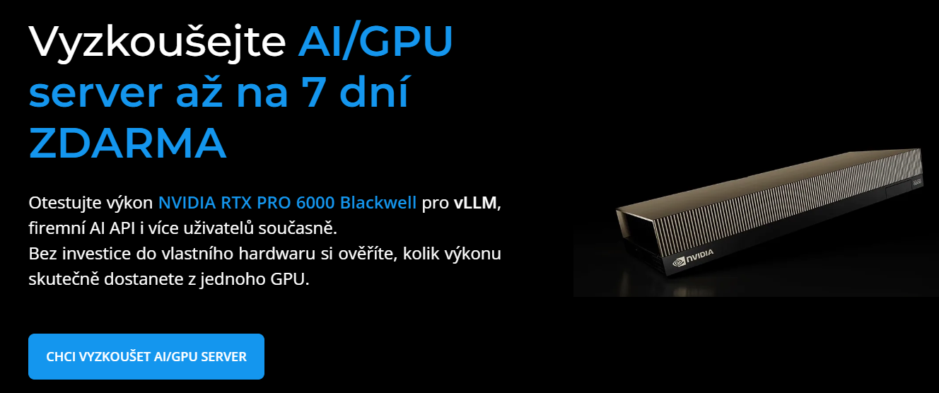 Pokud chcete podobné modely testovat ve vlastní režii, podívejte se na AI GPU servery. Vyhnete se čekání na veřejné kapacity a máte jistotu, že výkon, VRAM i síť zůstávají pod Vaší kontrolou.